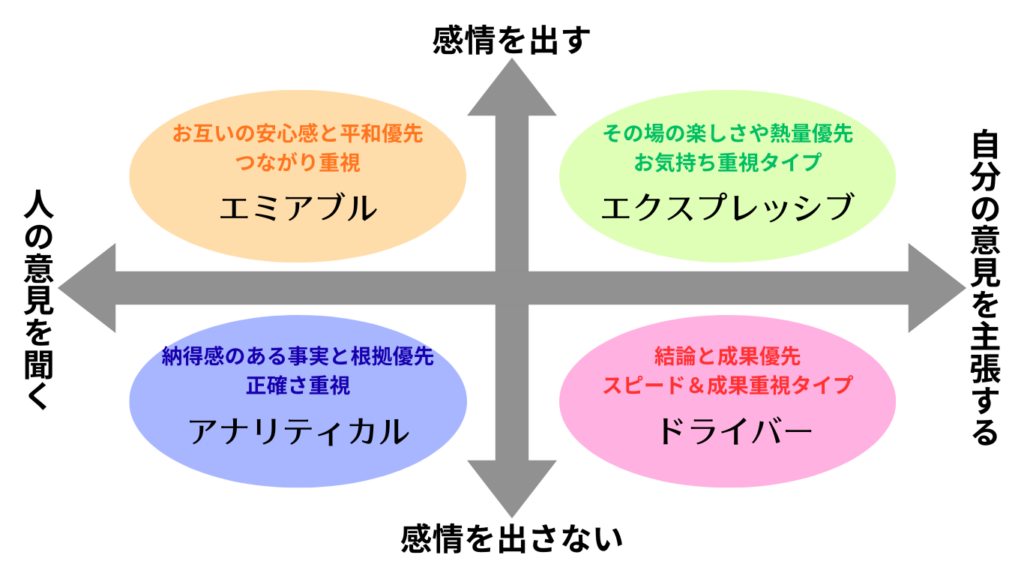 「事実と数字」を優先するアナリティカルと、「その時の感情」を優先するエクスプレッシブ側の温度差からすれ違いが発生します。