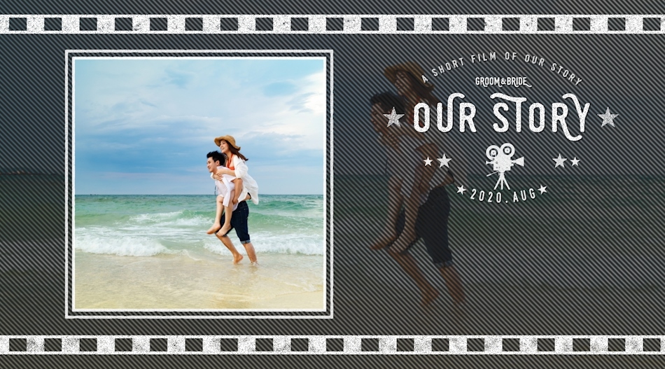 - 新郎・新婦の生い立ち頂いたお写真の隙間にコメントとデザインを施した当時の年齢を入れてムービーを作成します。